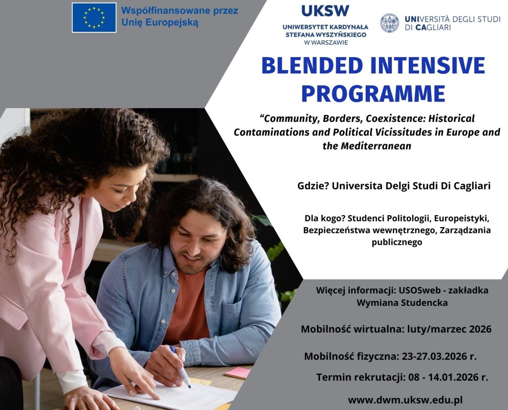 Zapraszamy studentów politologii, europeistyki, bezpieczeństwa wewnętrznego oraz zarządzania publicznego do udziału w międzynarodowym programie Blended Intensive Programme, który łączy wykłady online z intensywnym tygodniem zajęć; uczestnicy pogłębią wiedzę na temat wybranych realiów funkcjonowania społeczności lokalnych współistniejących z grupami o odmiennym pochodzeniu kulturowym.