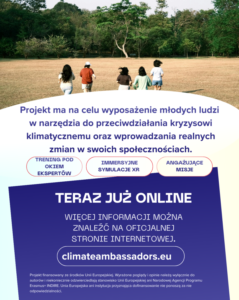 Zmiana klimatu nie jest już wyłącznie wyzwaniem przyszłości – to rzeczywistość, która już dziś wpływa na funkcjonowanie naszych społeczeństw. W obliczu rosnącej liczby zagrożeń środowiskowych kluczowe staje się przygotowanie młodych ludzi do świadomego i odpowiedzialnego działania. Odpowiedzią na te potrzeby jest projekt Climate Ambassadors – międzynarodowa inicjatywa współfinansowana przez Unię Europejską w ramach programu Erasmus+.