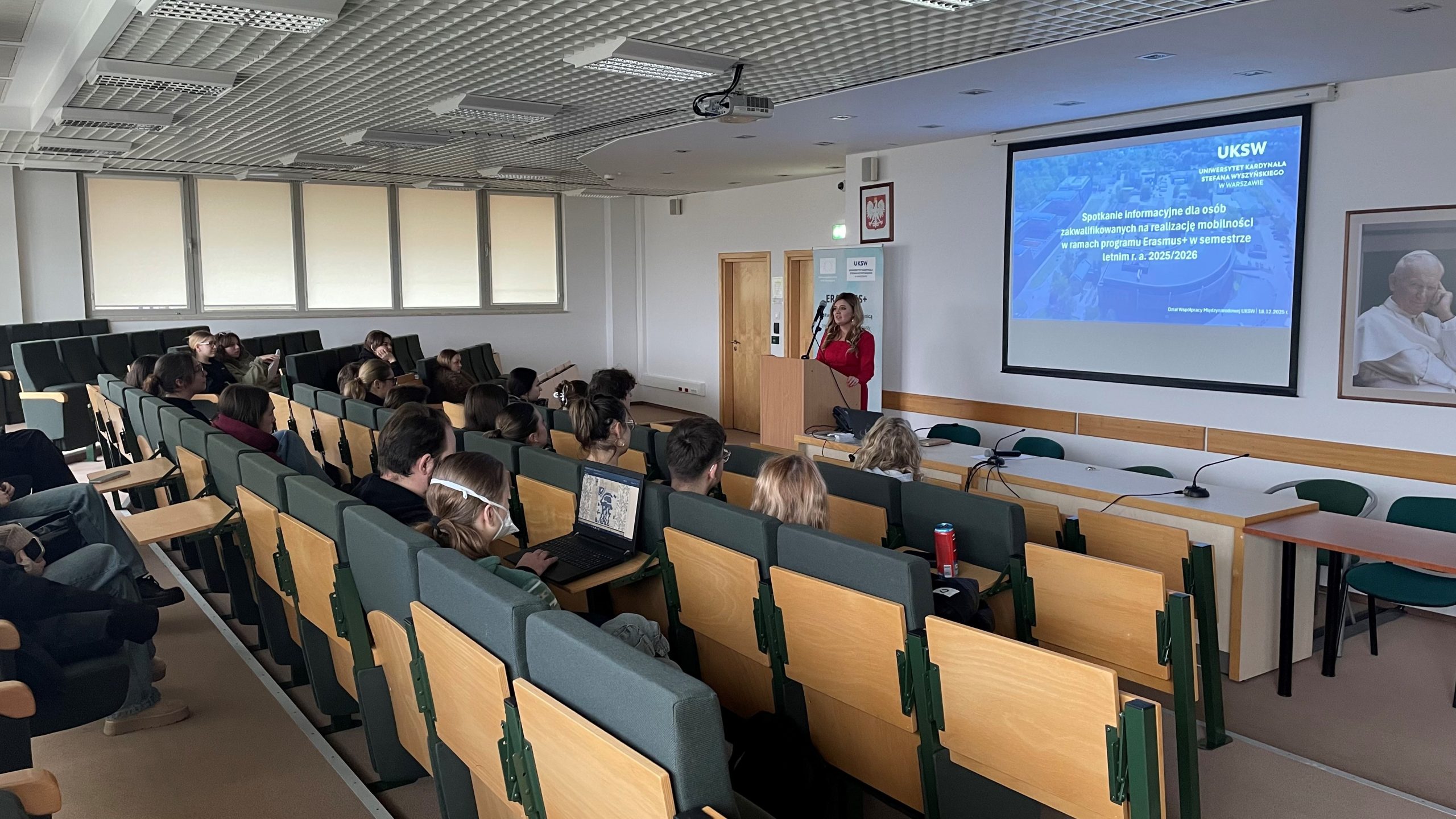 18 grudnia 2025 r. odbyło się spotkanie informacyjne dla studentów zakwalifikowanych do udziału w programie Erasmus+ w semestrze letnim roku akademickiego 2025/2026, zorganizowane przez Dział Współpracy Międzynarodowej UKSW.