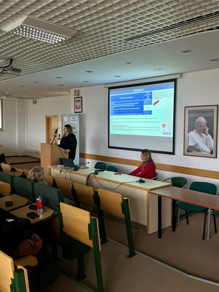 Podczas wydarzenia uczestnicy uzyskali szczegółowe informacje dotyczące przygotowania, realizacji oraz rozliczenia mobilności. Omówiono m.in. wymagane dokumenty, kwestie ubezpieczenia, proces przygotowania porozumienia o programie zajęć (Learning Agreement) oraz zasady uznawania przedmiotów po powrocie z mobilności.