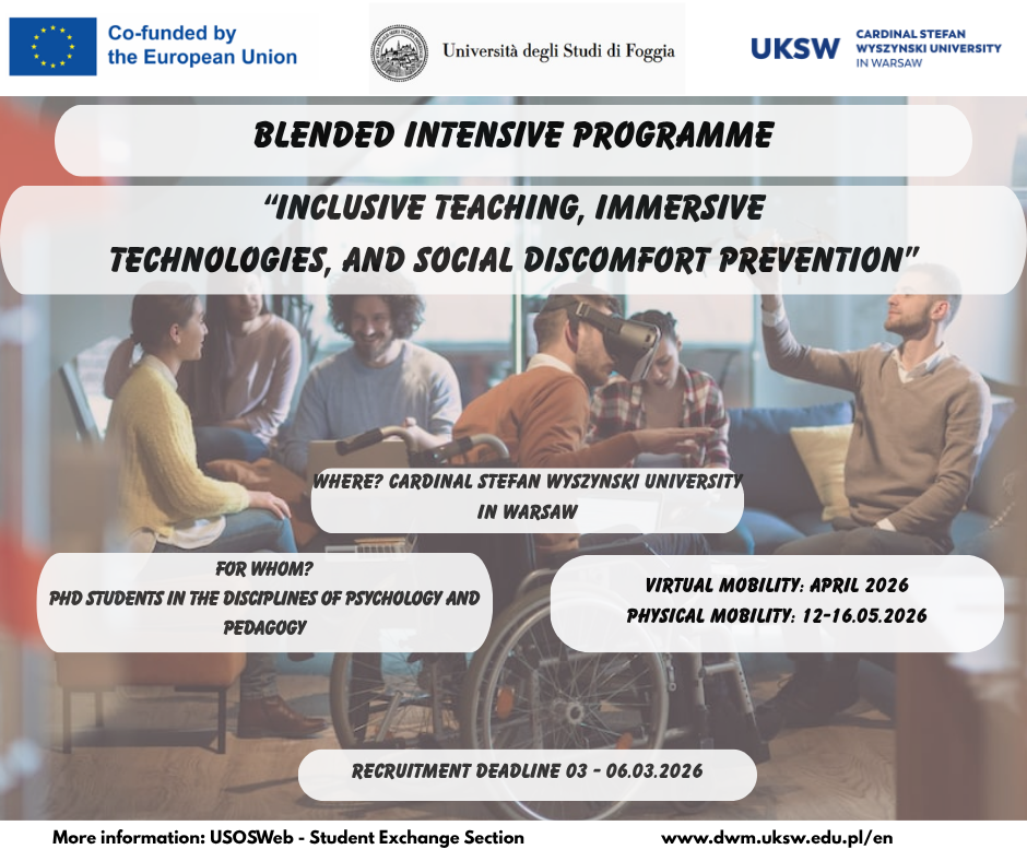 – on-site sessions at UKSW focusing on ethics, inclusion, and well-being in education;